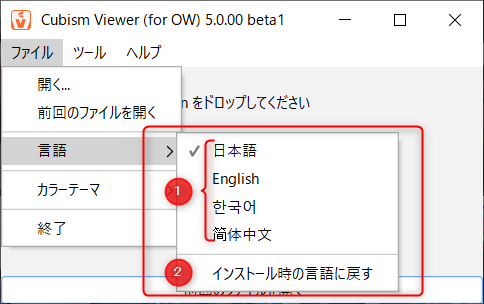 Cubism Viewer (for OW)のメニュー