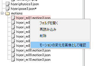 .motion3.jsonを選択し、右クリックから[モーションの変化を画像として確認]をクリックすると、カーブ曲線を画像で確認することができます。