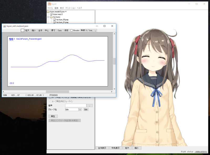 ただ、調整が必要な場合は再度.motion3.jsonを書き出す必要がありますので注意が必要です。