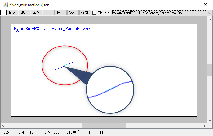 4.1より前のCubism Viewer (for OW)では、どのようなモーションファイルでもCubismエディタのアニメーションと同じカーブで再現されていました。