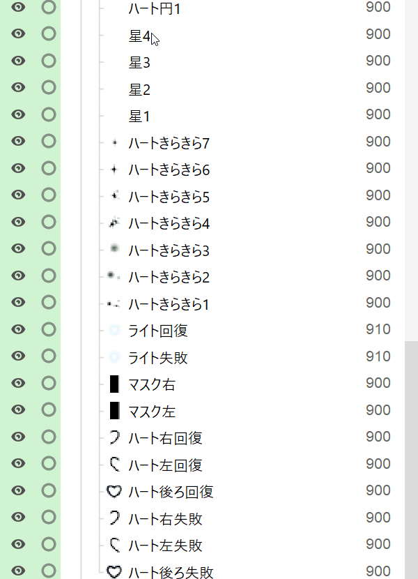 グループ化を行うと、パーツ自体に設定された描画順がその中にある全てのオブジェクトに反映されます。