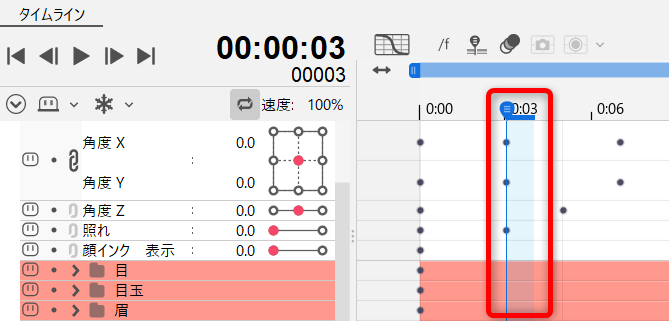 プロパティグループ内では、それぞれキーフレームの編集が可能です。