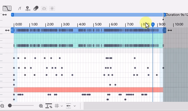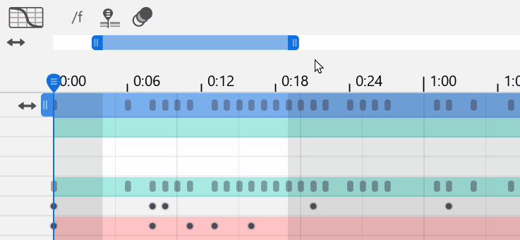 トラックの右端と左端の矢印を左右にドラッグすると、タイムライン上のトラックの位置を移動できます。