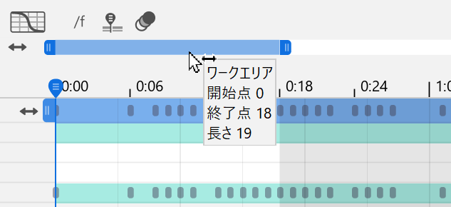 青色のワークエリアをドラッグすることで再生する範囲を移動することができます。