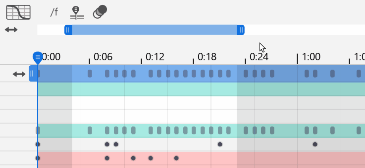 左右の末端をドラッグすると、トラックの長さを変更できます。