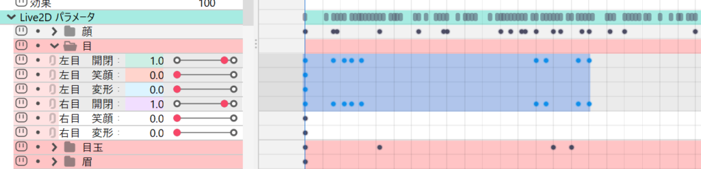 チェックを入れると、選択しているパラメータのすべてのキーが選択状態になります。