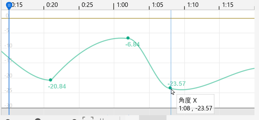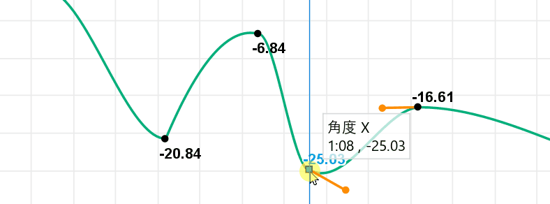 [カーブのキーの位置にスナップ]にチェックを入れると、選択したキーを前後のキーの数値にスナップします。