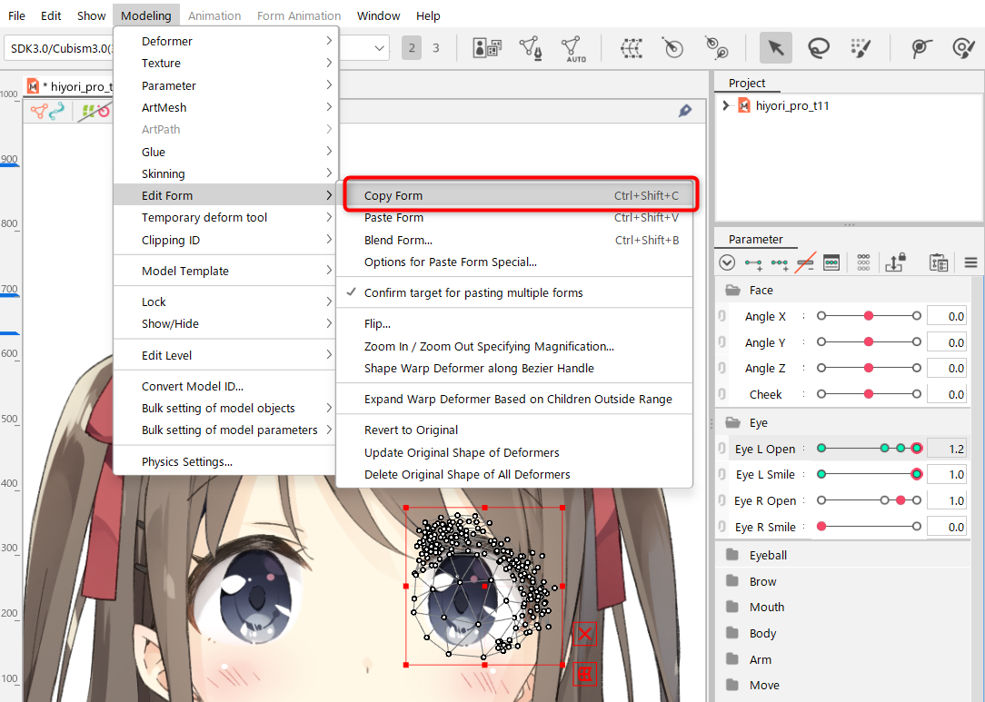 Objects such as ArtMeshes and deformers can be inverted, and forms can be copied/pasted/blended.