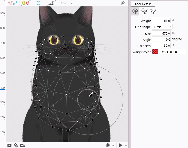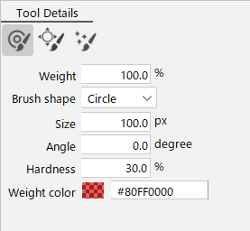 The larger the value, the darker the color in [Weight color] and the larger the deformation.