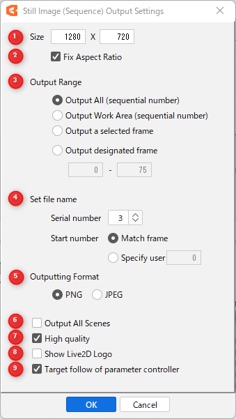 | (8) | Show Live2D logo | Export with Live2D logo displayed. |