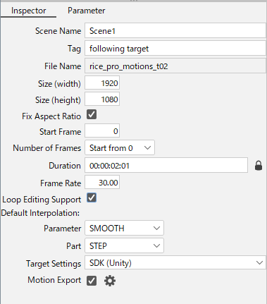 | Target Settings | Select the target version of the animation. For details, please refer to the “Select Target Version” page. |