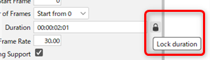 | Duration | Enter the length of the scene. The value changes when switching between time display and frame count display. Click the Lock button to lock the length of the scene. Click the button again to unlock the length. ![]() |
