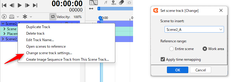 - Right-click on a scene track and click [Change Scene Track Settings] to open the settings dialog box.
