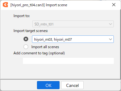 - In the [Add Comment to Tag] section, you can add any comment following the tag of the imported scene.