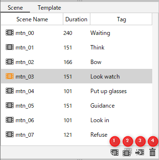 | 4 | Delete selected scene | Delete the selected scene. Undo is not available. |