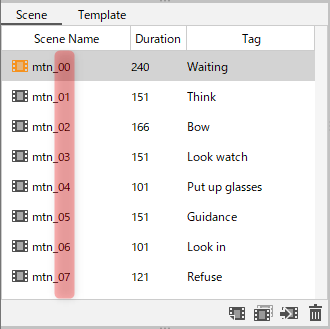 | 2 | Copy selected scene | Duplicate the selected scene. |
