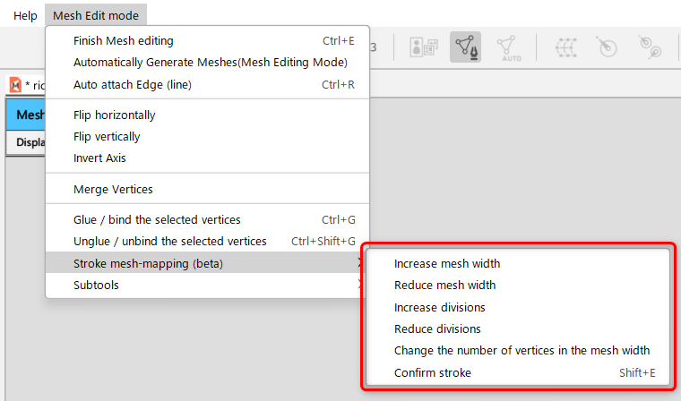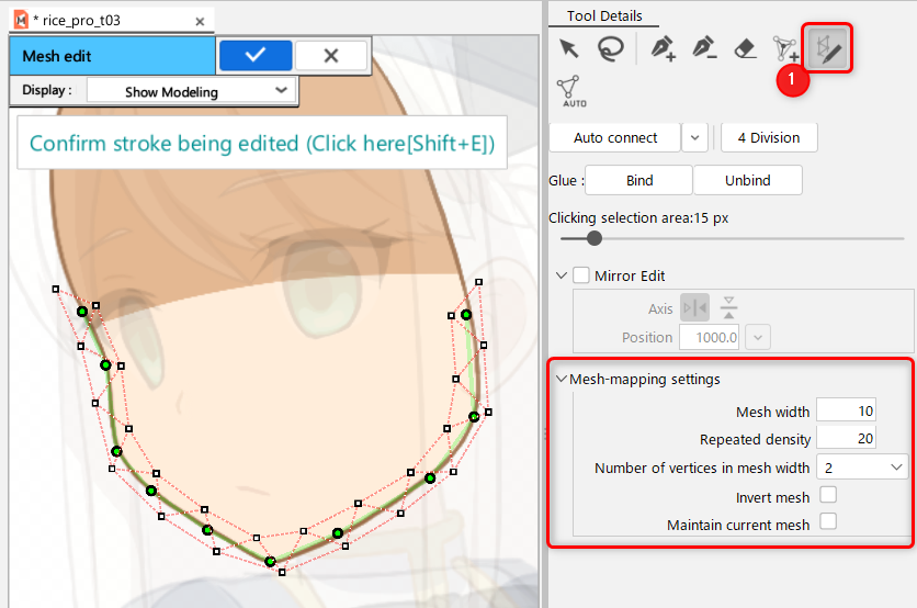In [Mesh Edit mode], select the [Stroke Mesh-mapping] icon (1).