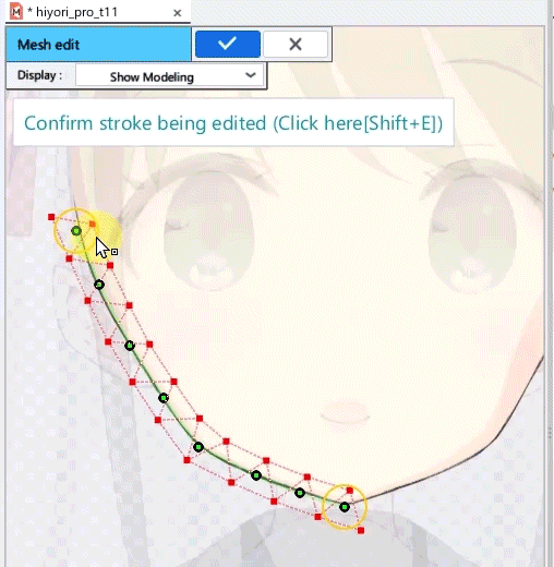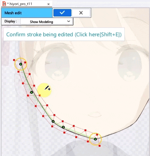 | [Ctrl] + click | Add an edit point (orange circle) on the stroke line. |