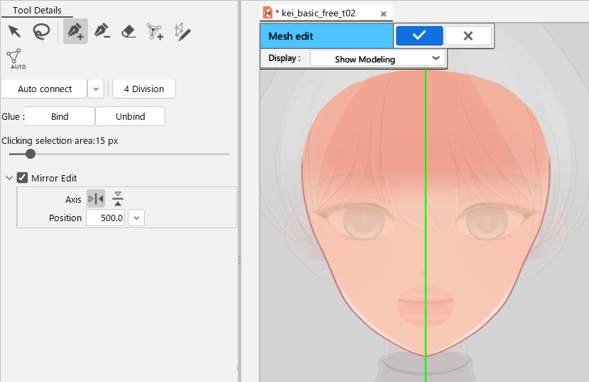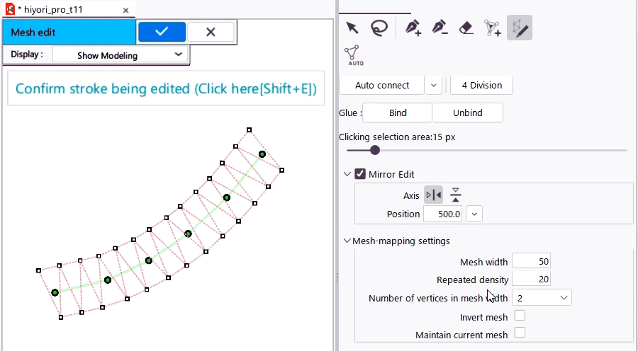 Select the ArtMesh and click [Edit Mesh manually] on the toolbar to switch to Mesh Edit mode.