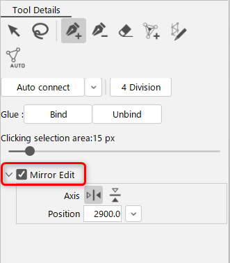 Check the [Mirror Edit] checkbox in the [Tool details] palette.