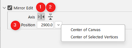 | 3 | You can specify the position of the axis. Center of the Canvas: The axis is placed in the center of the canvas. Center of selected vertices: The axis is placed in the center of the selected vertex group. |