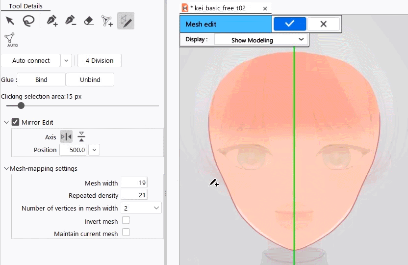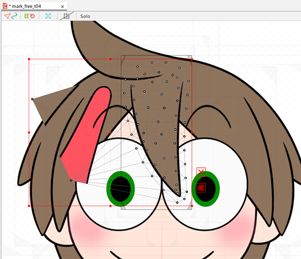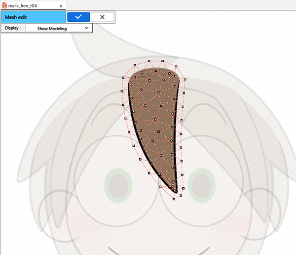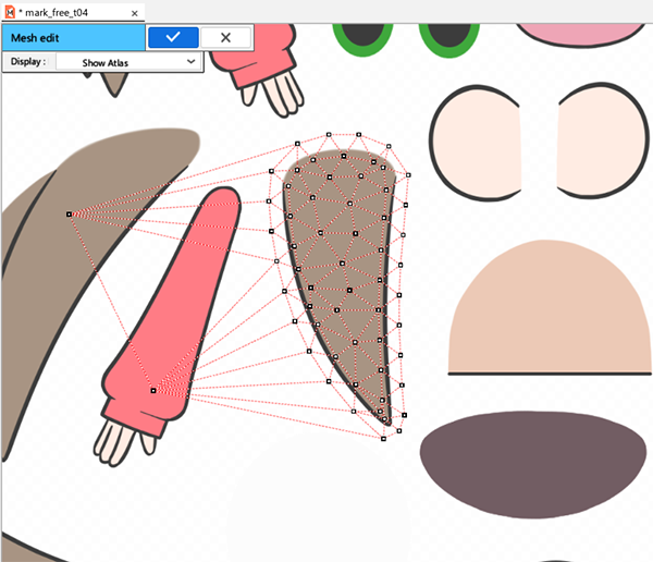For facial parts such as eyelashes and mouth area, it is recommended to manually edit the ArtMesh to a suitable mesh for deformation in order to apply detailed deformation to the ArtMesh.