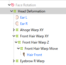 If a color is set on the parent deformer, it will be reflected in the child objects.