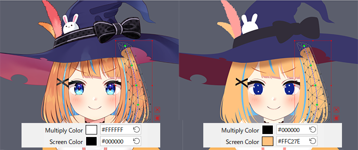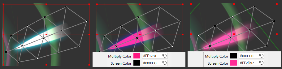 As shown in the center image, colors tend to be dull because they are darkened by only compositing [Multiply Color], but as shown in the right image, colors can be expressed beautifully by filling [Multiply Color] with black and compositing colors using [Screen Color].