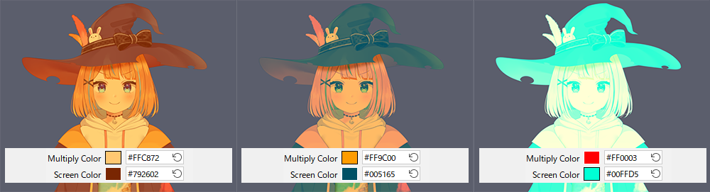 Multiply Color and Screen Color are used for easy brightness adjustment.