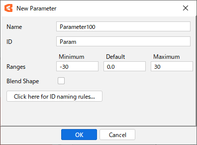 You can create Blend Shape parameters by checking the [Blend Shape] checkbox in the [Create New Parameter] dialog box.