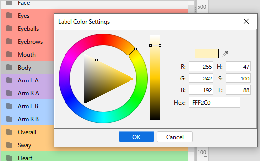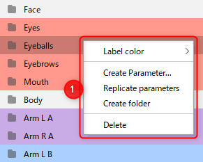 You can set a color for a parameter group by right-clicking the parameter group and selecting [Label Color].