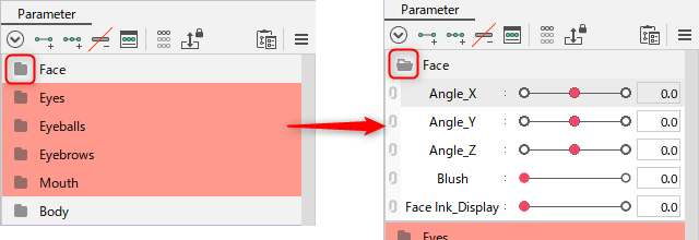 Click on the icon on the parameter group to expand or collapse it.