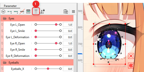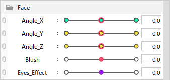 | (4) | Palette menu | Reset to default values: Reset currently selected values of parameters back to the previously set default values. For example, it is used to return a face or body that was facing diagonally to a frontal orientation. Lock Default Forms: Lock the default keyform so that it cannot be edited. For example, this can prevent mistakes such as accidentally changing the keyform of the source image. Synchronize parameter values across tabs: Synchronizes common parameter values of the displayed model. Parameter settings: You can check the list of parameters, change names and IDs, default values, etc., and set repeats. See “About Parameters” for details. Parameter group settings: You can check the list of parameter groups and change their names and IDs. See “About Parameters” for details. Automatic Generation of Four Corner Forms: The form of the four corners is automatically generated when parameters such as [Angle X] and [Angle Y], [Eyeball X] and [Eyeball Y] are combined. See “Automatic generation of four corner forms” for details. Motion Inversion: The center of the deformer is used as the axis to create an up/down or left/right inverted motion. See “Motion inversion” for details. Auto generation of facial motion: • Generate a face deformer Opens the dialog box for automatic generation of the face deformer. • Generate facial motion Opens the Auto generation of facial motion dialog box. See “Auto generation of facial motion” for details. Auto generation of sway motion: Open the Auto generation of sway motion dialog box. See “Auto generation of sway motion” for details. Application of 3D rotation expression: Opens the dialog box for applying a 3D rotation expression. See “Application of 3D rotation expression” for details. Multiple Keys Editing: You can edit the keyforms of the draw order and opacity of objects tied to multiple parameters all at once. See “Multiple keys editing function” for details. Bulk Reflect: Key values for multiple parameters can be selected and inverted all at once. See “Parameter adjustment” for details. Select object associated with key: You can select the object associated with one key of the parameter. See “Add/delete keys to/from parameters” for details. Arrange Parameter Configuration for Selected Object: Aligns the parameter configuration of the selected object. See “Parameter adjustment” for details. Settings for Eye Blinking and Lip-sync: You can select parameters to be tied to eye blinking and lip-sync, which are functions of the Animation View. See “Eye blinking setting” and “Creating scenes with background music and audio” for details. Extended Interpolation: The orbit between keyforms can be interpolated with a curve. You can select either [Ellipse Interpolation] or [SNS Interpolation]. See “About Extended Interpolation” for details. Limit Settings for Blend Shape Weights: Open the Limit Settings for Blend Shape Weights dialog box. See “Limit Settings for Blend Shape Weights” for details. Motion-sync Settings: Open the Motion-sync Settings dialog box. See “Motion-sync” for details. Validation of mapped parameters: Opens the Validation of mapped parameters dialog box. Delete empty parameters: Deletes all parameters contained in the model being edited for which no object has a key. Delete empty parameter groups: Deletes all parameter groups in the model being edited that do not contain a single parameter. |