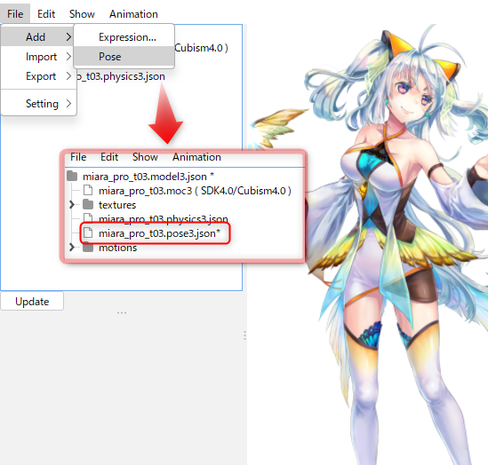 Click [Menu Bar] -> [File] -> [Add] -> [Pose].