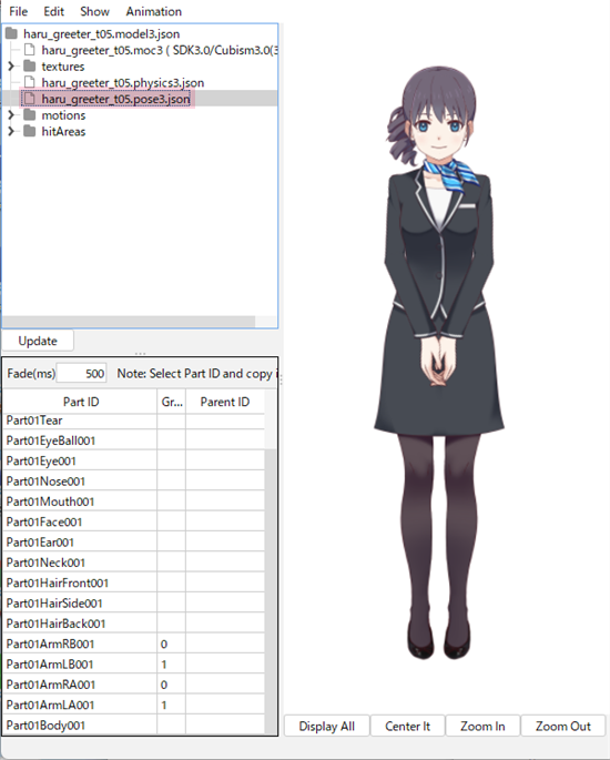 Set “parent ID” for the arm parts of other outfits other than the arm parts you set to show or hide in motion to create a parent-child hierarchy.