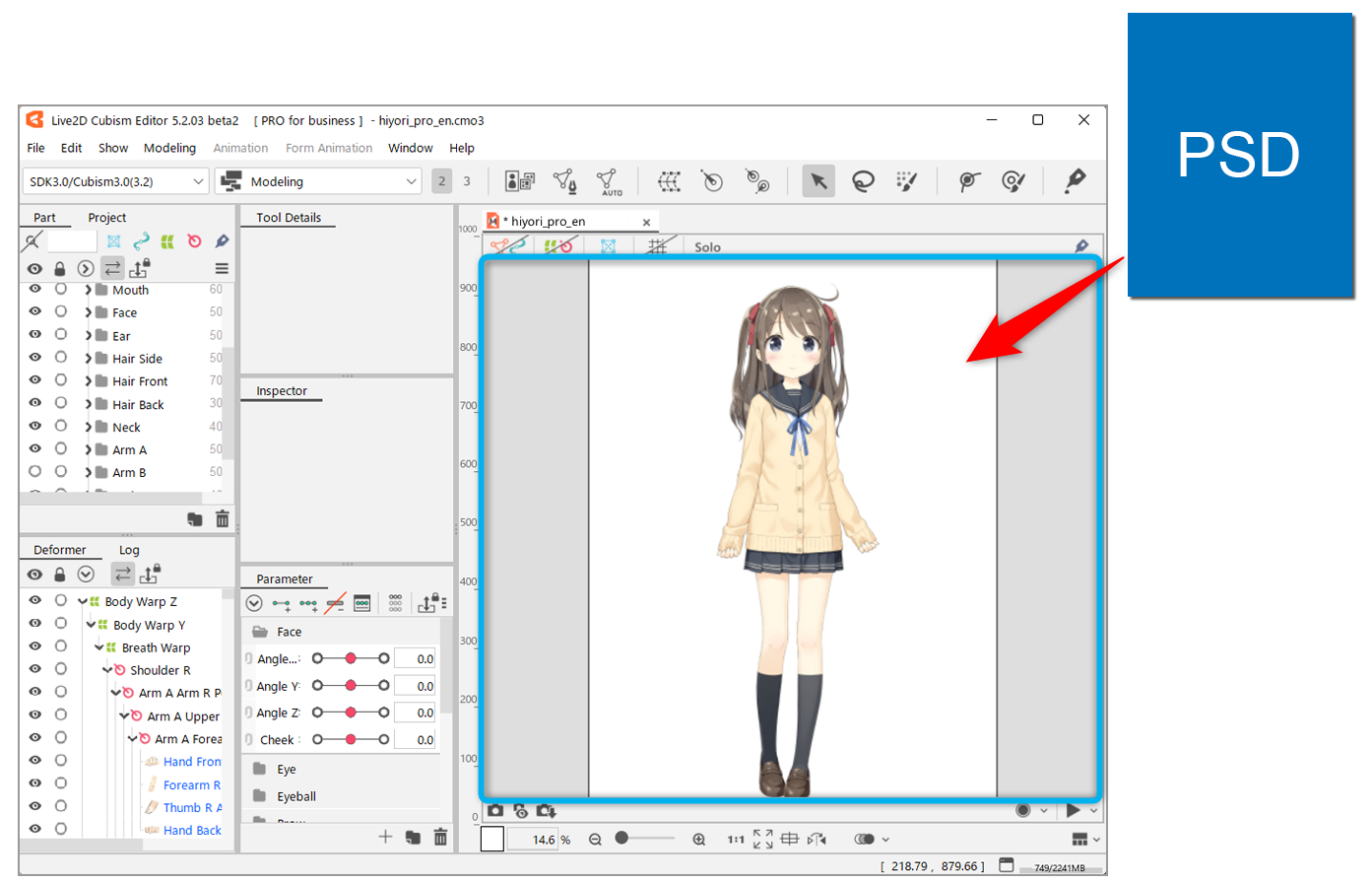 - On the [Project] palette, expand the model you are editing in the tree and find the PSD file you re-imported for replacement in the [Source Image].