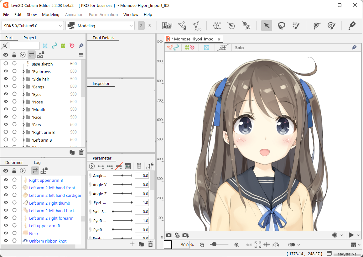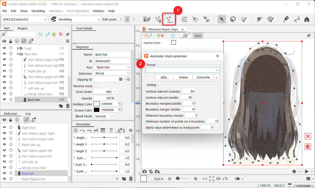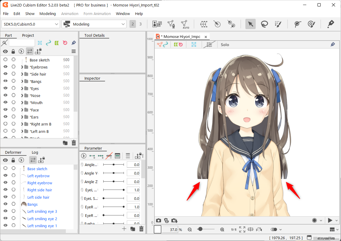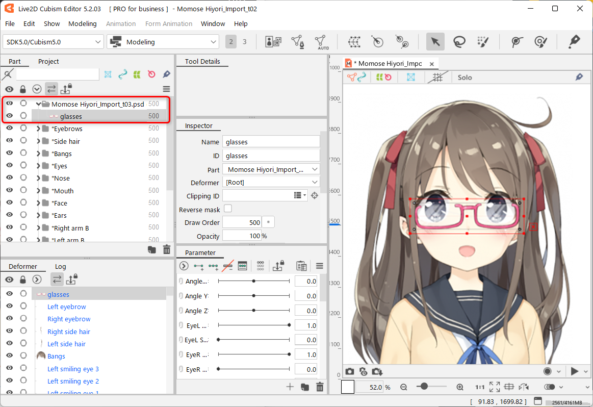 When a warp deformer has already been set up for the parent of an ArtMesh, if the child ArtMesh extends beyond the parent’s warp deformer, it will cause a load during data embedding.