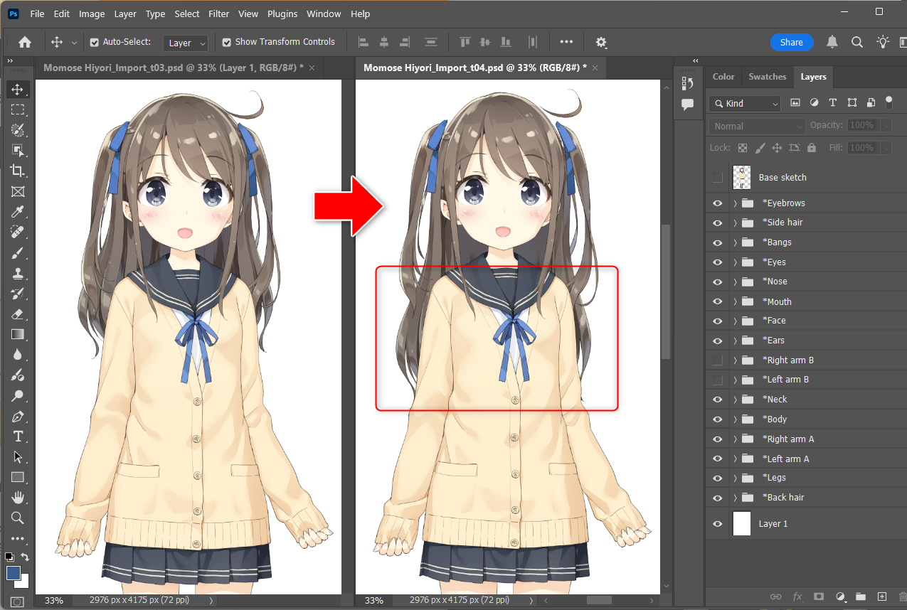 1. First, open the PSD imported into the model and adjust the appropriate areas.