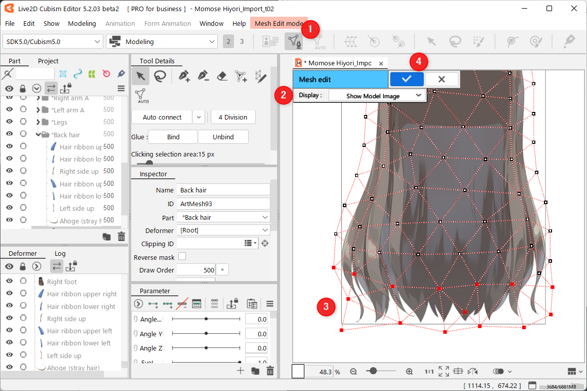 - When mesh adjustment is complete, click [✔] to exit Mesh Edit mode.