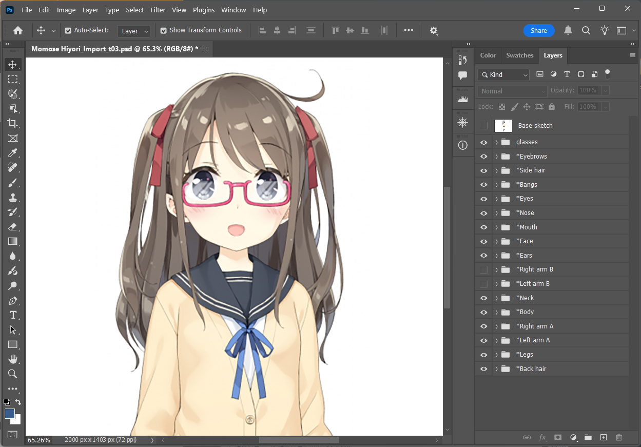 A parts group with the name of the loaded PSD file will be created at the top of the [Part(s)] palette.