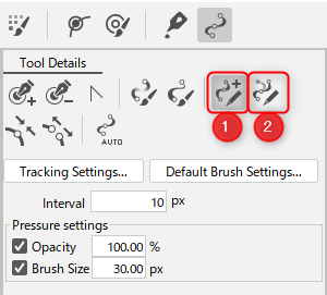The Opacity and Brush Size values are the values that will be applied to the opacity and line width of the control points of the ArtPath being created.