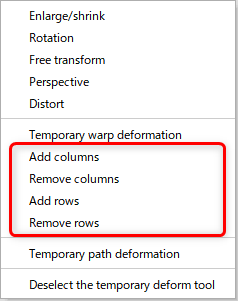Alternatively, click on the [Form Animation] menu -> [Temporary deform tool] -> [Temporary warp deformation].