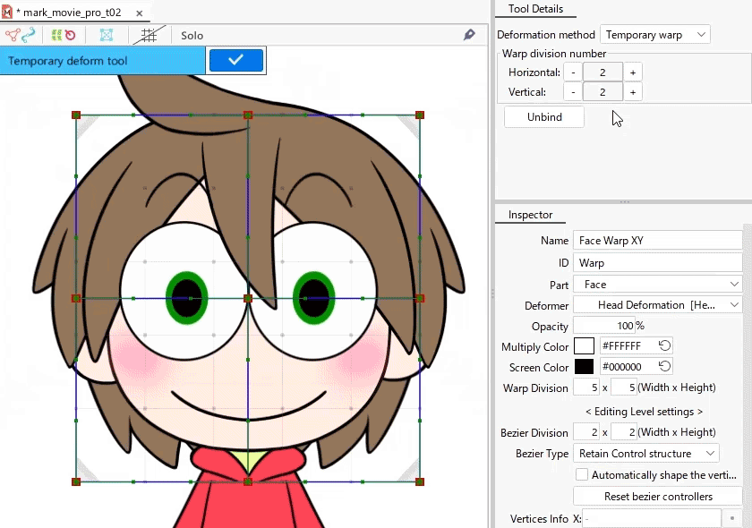 Alternatively, select [Temporary warp] from the Transform Methods in the Tool Details palette to manipulate the Number of Warp Divisions items.