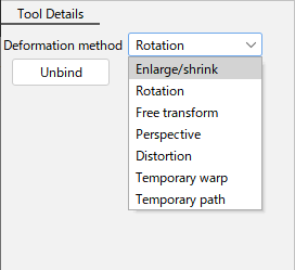 - Click [Unbind] displayed under Transform Method in the Tool Details palette