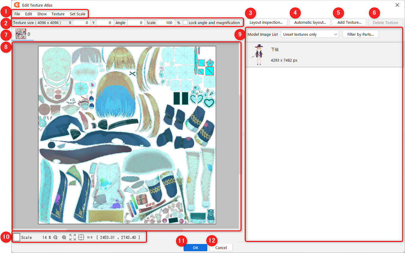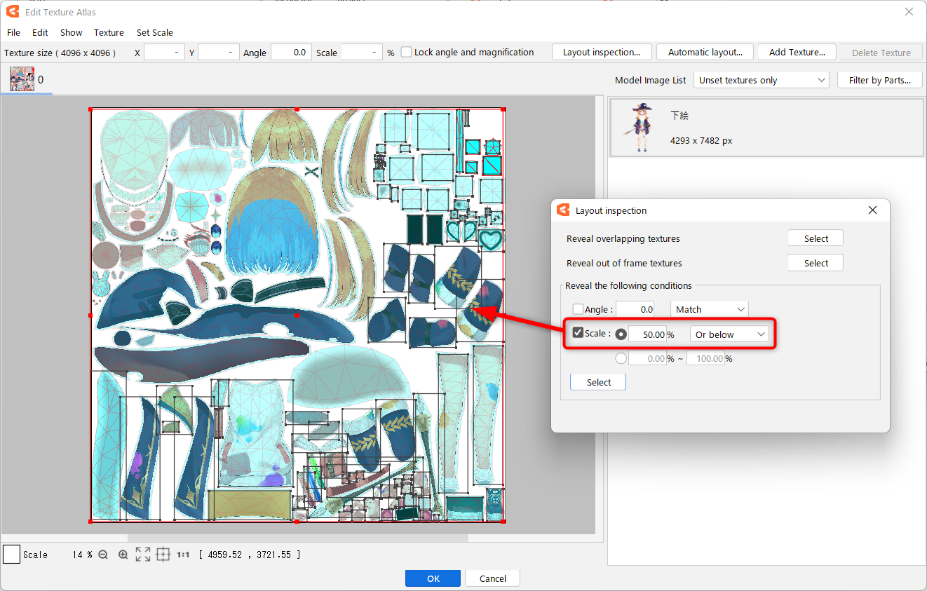 *1 Objects that do not fit into the target texture atlas will be returned to the model guide image list when the magnification is fixed and auto-layout is performed.