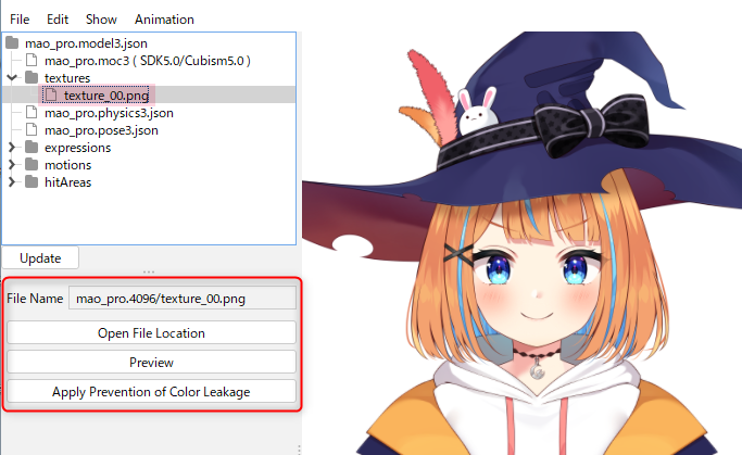Do not use other software to open and save texture files that have been exported after having this processing applied to them.