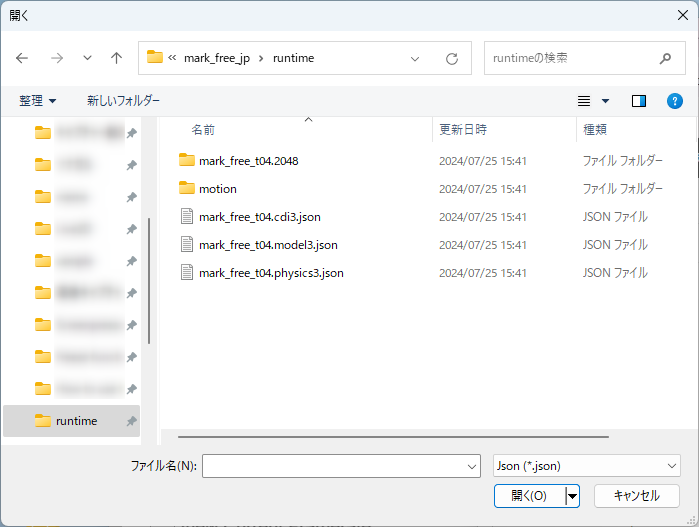 Select the .motion3.json file to be loaded and click [OPEN].
