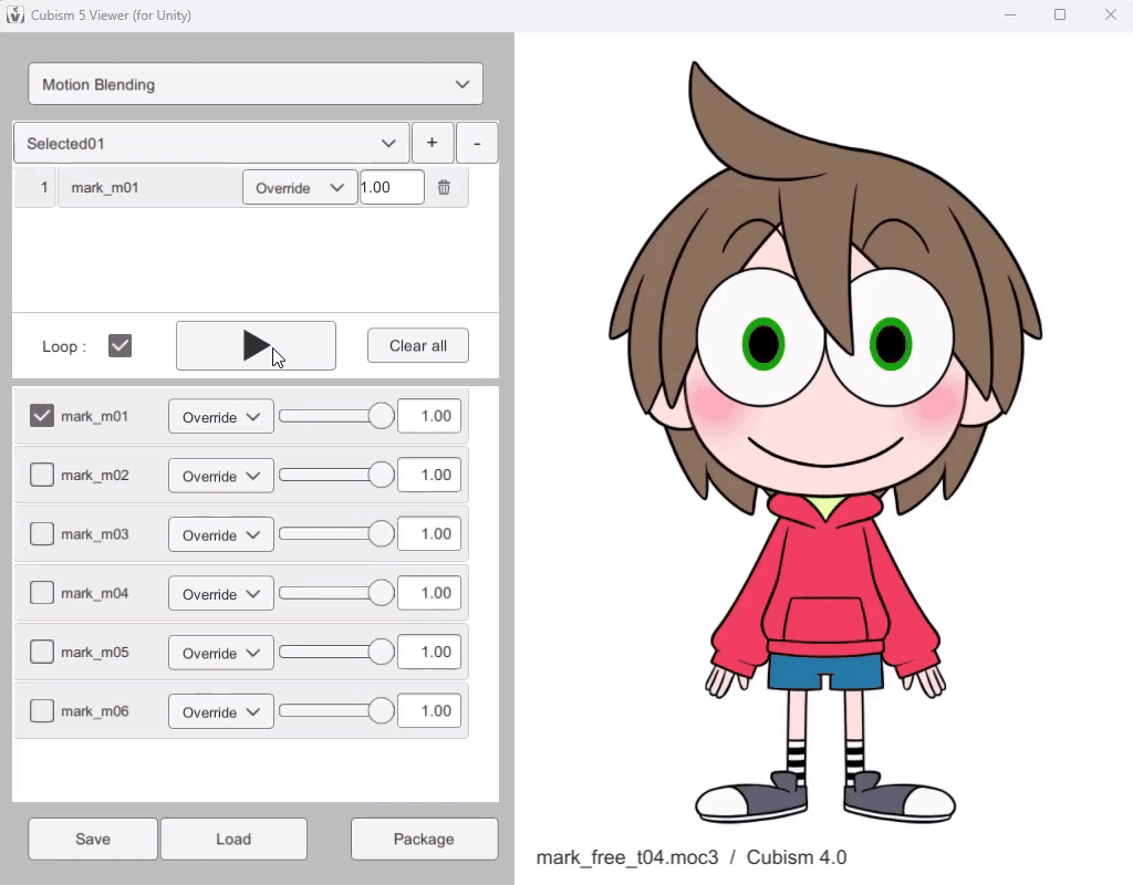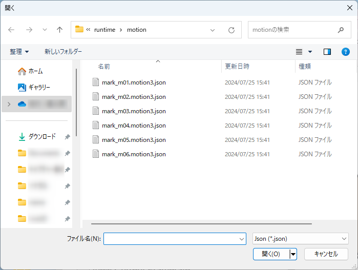 When loading is complete, the selected .motion3.json file and all .motion3.json files in the same folder hierarchy will be loaded.