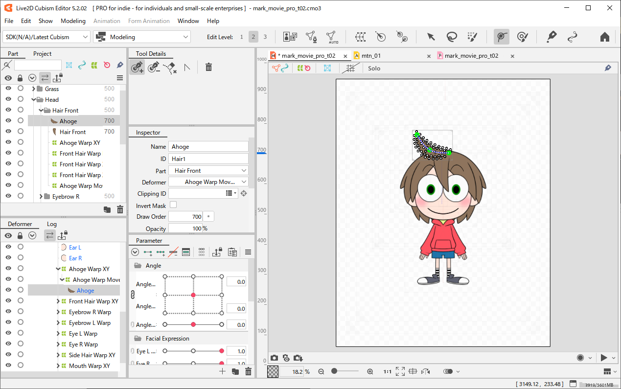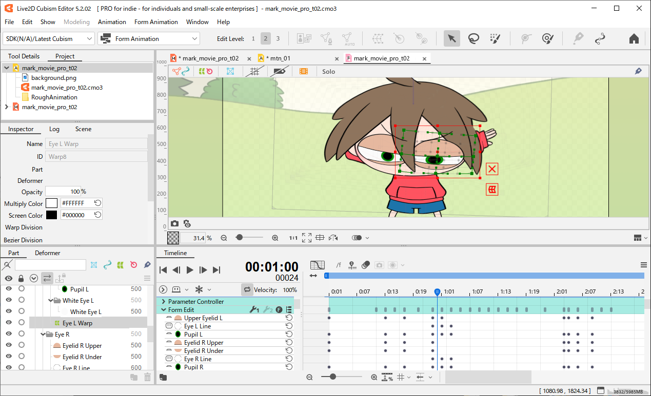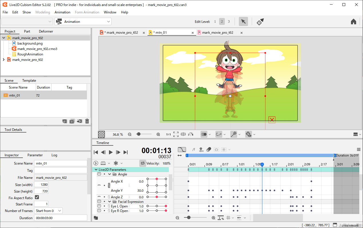 By default, there are separate workspaces dedicated to the creation of [Modeling], [Animation], and [Form Animation].
