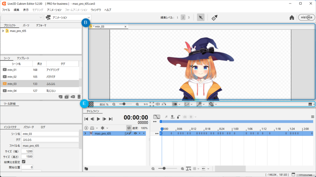 장면을 만들거나 타임 라인에서 키 프레임을 찍고 모션을 만들 때 등에 사용합니다.